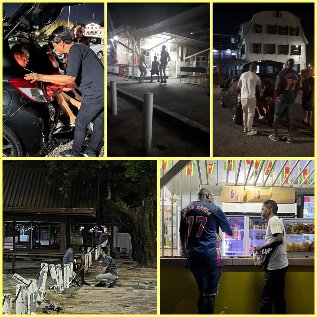 Zodra het schemerig wordt veranderd de atmosfeer aan de waterkant. Het is dan een plek die door de lokale inwoner van Paramaribo wordt bezocht om te chillen met vrienden, gezinnen die een verjaardag samen vieren of stelletjes die graag tijd met elkaar doorbrengen. Maar het is ook een plek waar vele dakloze en verslaafde naar toe trekken, voor allerlei doeleinden. De een probeert er te scoren, de ander is opzoek naar een maaltijd en weer een ander past op een kraam en krijgt een vergoeding.